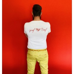 Rücken rot bedruckt, joseflovesbeef Logo in Flockdruck